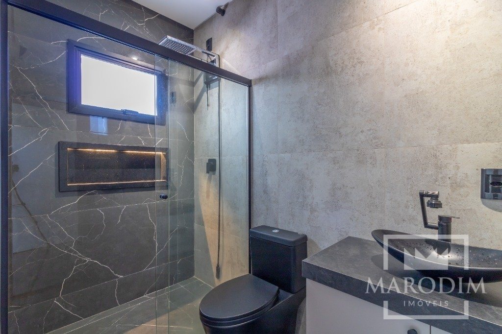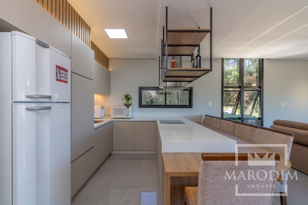 No pavimento inferior, você encontrará uma área de serviço para tornar as tarefas do dia a dia mais fáceis, uma garagem para dois veículos para garantir sua comodidade e segurança, um jardim interno que espelha a natureza para dentro de sua casa, ou pode ser utilizado como uma sala comercial, salão de festas ou como você preferir.