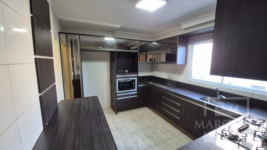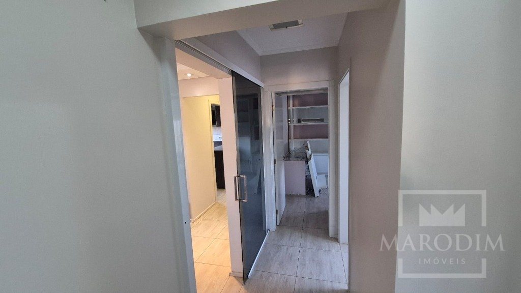 Composto de 3 dormitórios, incluindo 1 suíte, cozinha sob medida, sala de estar com lareira, sala de jantar, 2 banheiros, sacada fechada com churrasqueira, uma vaga de garagem.