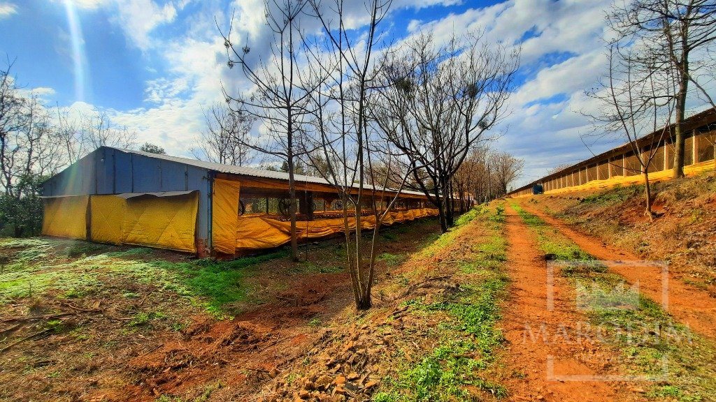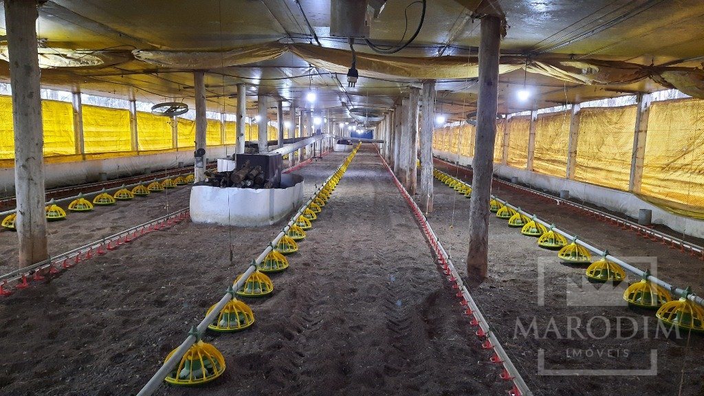 Vende-se uma área com 3.6 hectares, para criação de avicultura, contendo 1 aviário medindo 12x100 (1.200 m²), com poste lateral metálico, cobertura em aluzinco e pé direito lateral com 2,8 m e os outros 2 aviários, são duplos medindo 12x207 (2.484m²), com postes laterais em concreto e postes internos em madeira, cobertura em telha de barro e pé direito lateral com 3,3 m, ambos contém equipamentos convencionais para criação de frango de corte, sistema de alimentação e bebedouro automatizado, com capacidade de 80 mil aves de corte por lote, ambos os aviários em pleno funcionamento. Além disso, conta com uma casa de 100 m², composta de 03 dormitórios, sala, cozinha, banheiro e ainda conta com 3 silos, com capacidade de armazenamento de 12 toneladas, 2 silos com capacidade de armazenamento de 20 toneladas; água de poço artesiano, hortaliças, arvores frutíferas, oportunidade de manter os funcionários. E o melhor de tudo, a poucos minutos da cidade.