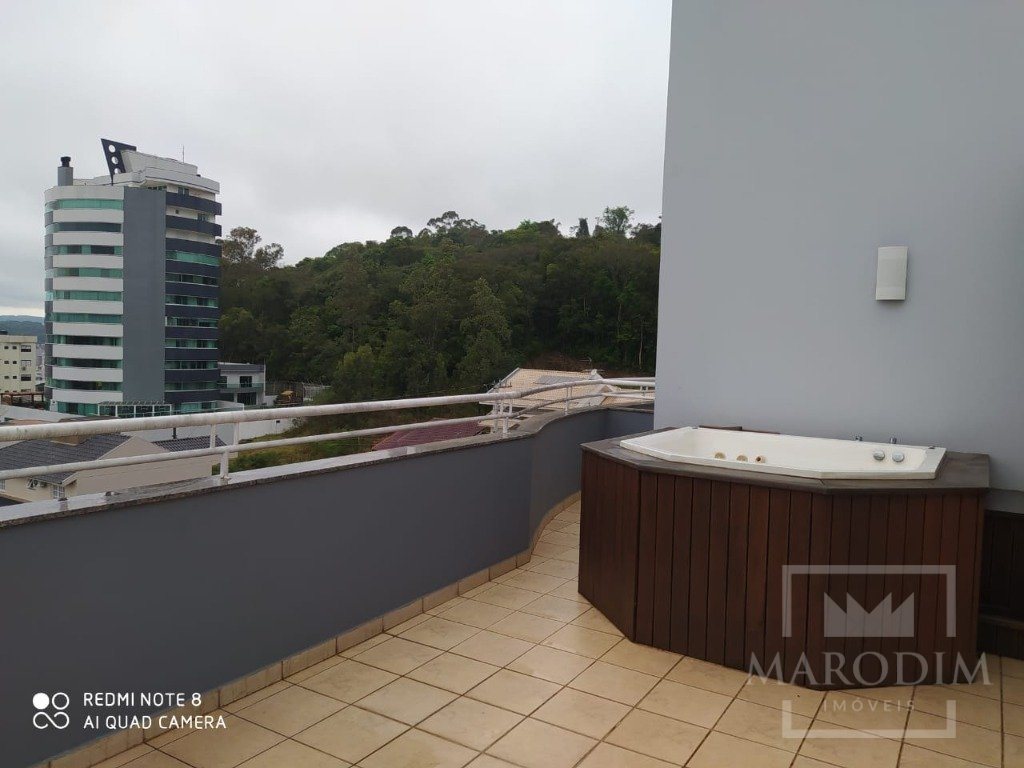 Cobertura duplex com vista panorâmica, primeiro pavimento com 91,23m² de área interna, com sala, três dormitórios, sendo uma suíte com closet, banheiro social e amplas sacadas. Escada de mármore com corrimão em vidro; Segundo andar com metragem interna de 42,40m², sala, cozinha sob medida, lavabo e lavanderia; Amplo terraço com 48,44m² de área descoberta, contendo uma jacuzzi;
