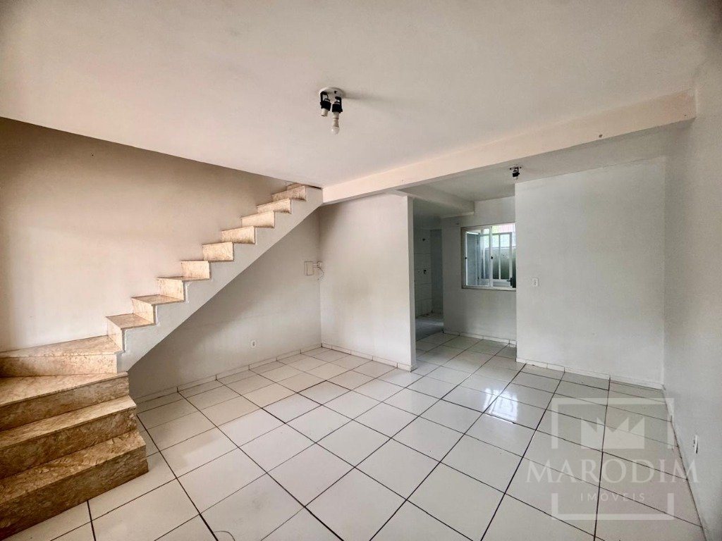 No piso inferior, dispõe de sala e cozinha integradas, proporcionando um ambiente amplo e funcional, além de área de serviço e garagem coberta.