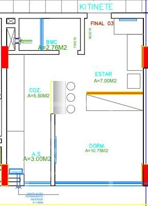 Apartamento de 1 dormitórios, sala cozinha integrados e um banheiro.